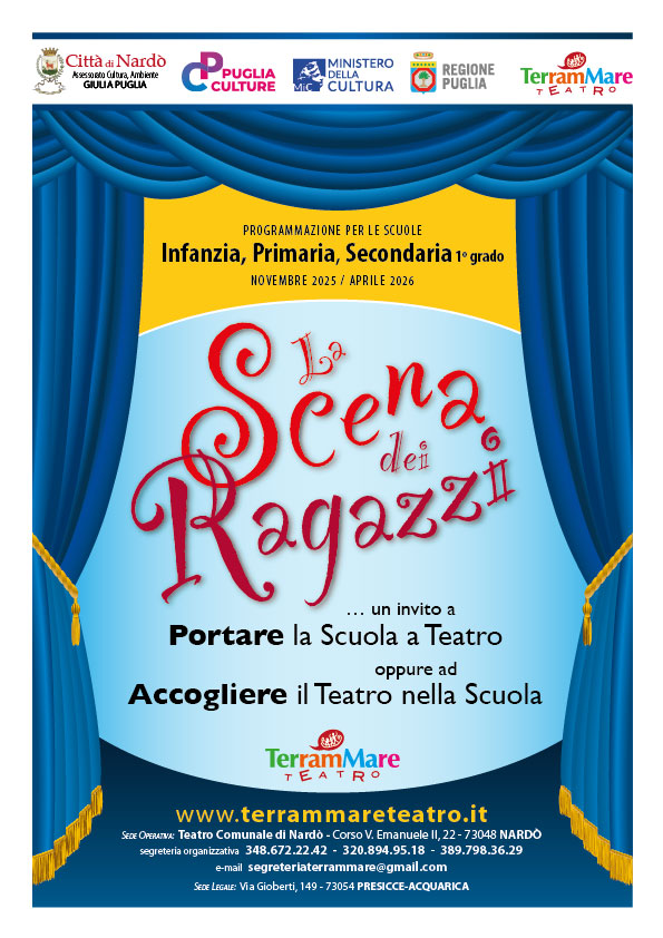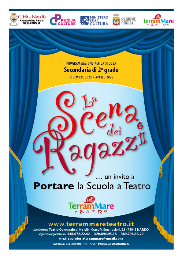 Il Teatro Comunale di Nardò, insieme all’Assessorato alla Cultura, a Puglia Culture, al Ministero della Cultura ed a TerramMare Teatro, è pronto ad aprire ancora una volta le sue porte agli studenti del Salento.
